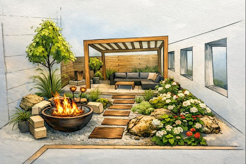 Un beau jardin commence par un plan. Avant la première plante, nous étudions votre terrain — sol, exposition, relief, vis-à-vis, contraintes techniques — pour concevoir un espace cohérent, durable et facile à entretenir.