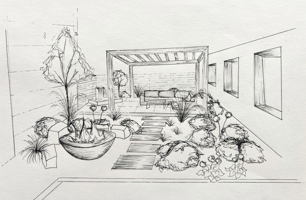 • Plan de composition, palette végétale, choix des matériaux.